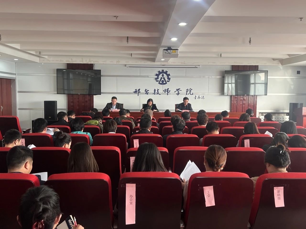 3月25日下午,邢台技师学院2025年第一季度党建工作会议在学院十二楼会议室召开。会议由学院党委副书记、院长陈玉英同志主持,党委副书记李忠敏同志出席会议,机关党委委员、各支部书记和支部委员、办公室意识形态工作负责人以及工会、团委、妇委会、基础部等部门主要负责人参加会议。会议总结回顾了过去一年的党建工作,也对新形势下学院整体党建工作做了新安排新动员,特别是对学院意识形态工作进行了专题研究部署。
